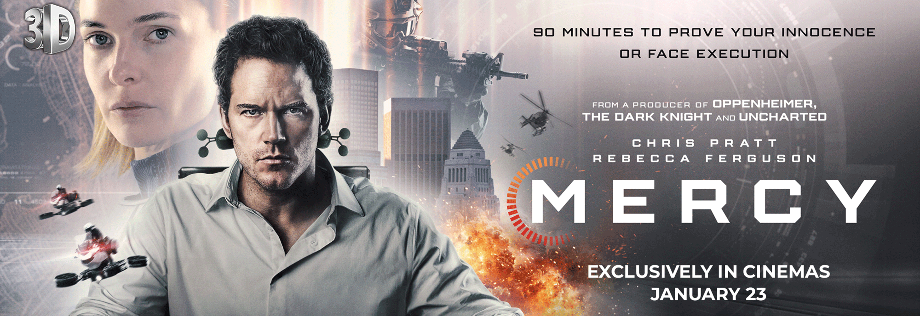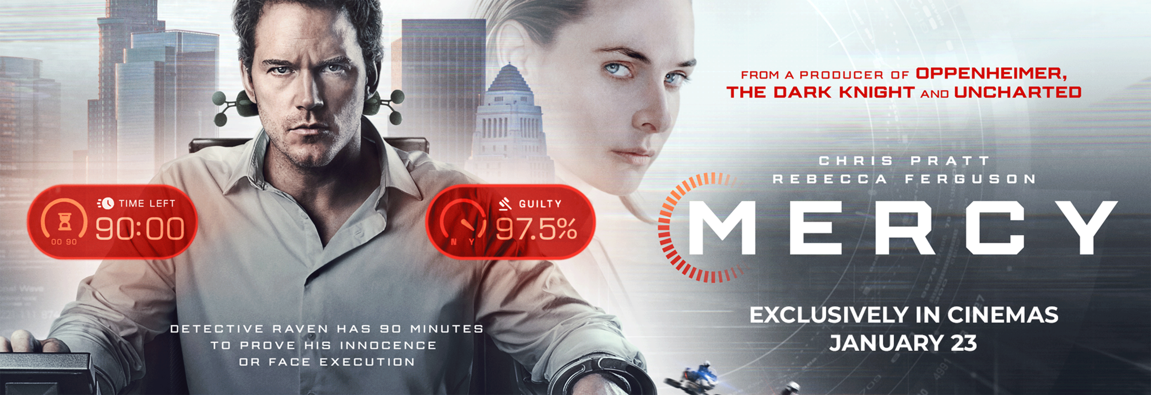 In the near future, a detective (Chris Pratt) stands on trial accused of murdering his wife. He has 90 minutes to prove his innocence to the advanced A.I. Judge (Rebecca Ferguson) he once championed, before it determines his fate.